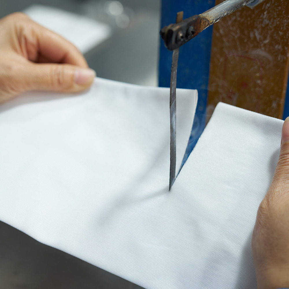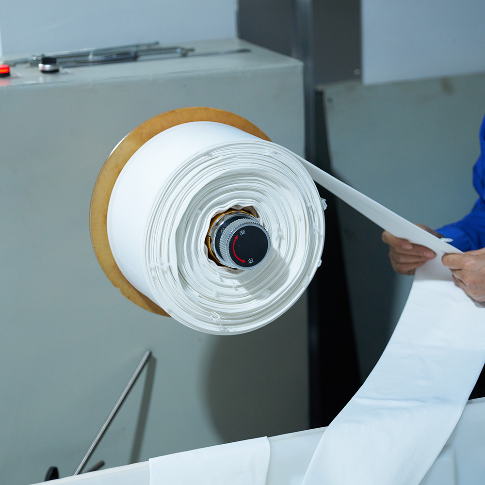 | 4. يتم قطع قماش الفلتر حسب الطول المطلوب من قبل العميل. | 5. يمكن خياطة الملابس المرشحة (حسب متطلبات العميل). | 6. المنتج النهائي |