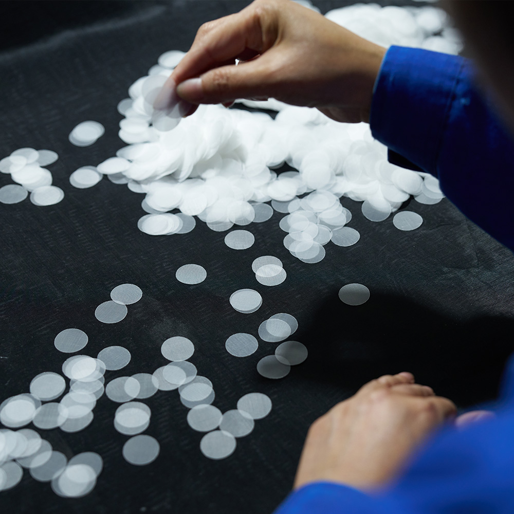 | 1. المواد الخام | 2. تحقق من عامل التصفية | 3. قطع إلى أشكال مختلفة |